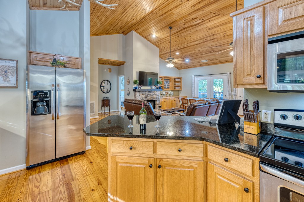 We chose to make this cabin a rental because of the awesome features it has like a large kitchen, six bathrooms, two living areas and tons of parking. Great for multi family and group travel. Perfect for a great trip to Big Canoe, GA!