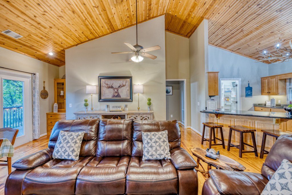 We chose to make this cabin a rental because of the awesome features it has like a large kitchen, six bathrooms, two living areas and tons of parking. Great for multi family and group travel. Perfect for a great trip to Big Canoe, GA!