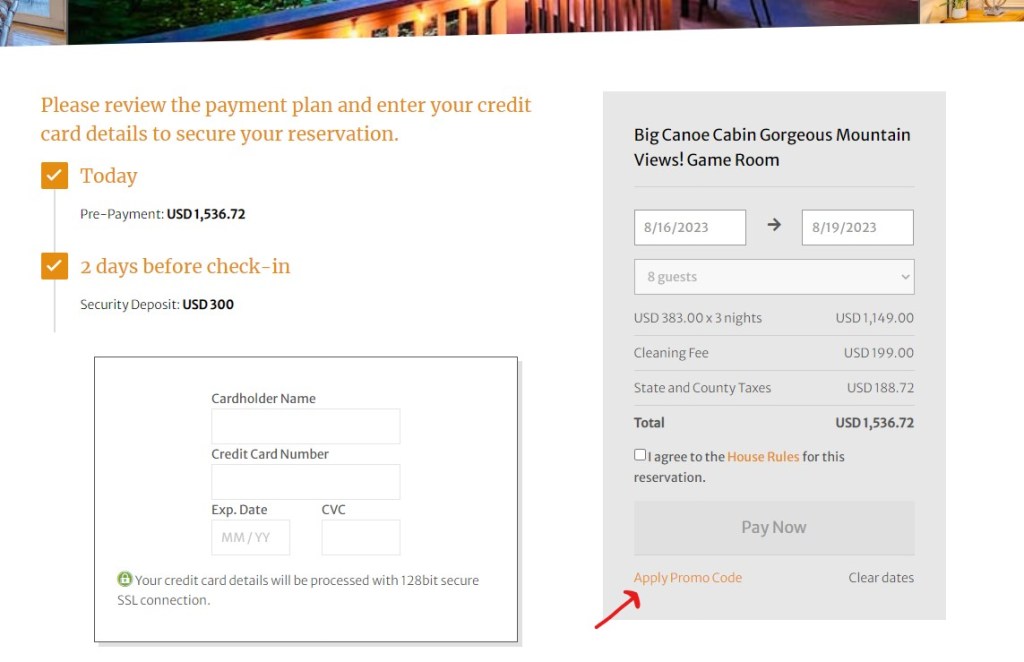You have to enter in your name and address before it will let you add the Promo Code. Please see picture above. If you have any questions please contact us.